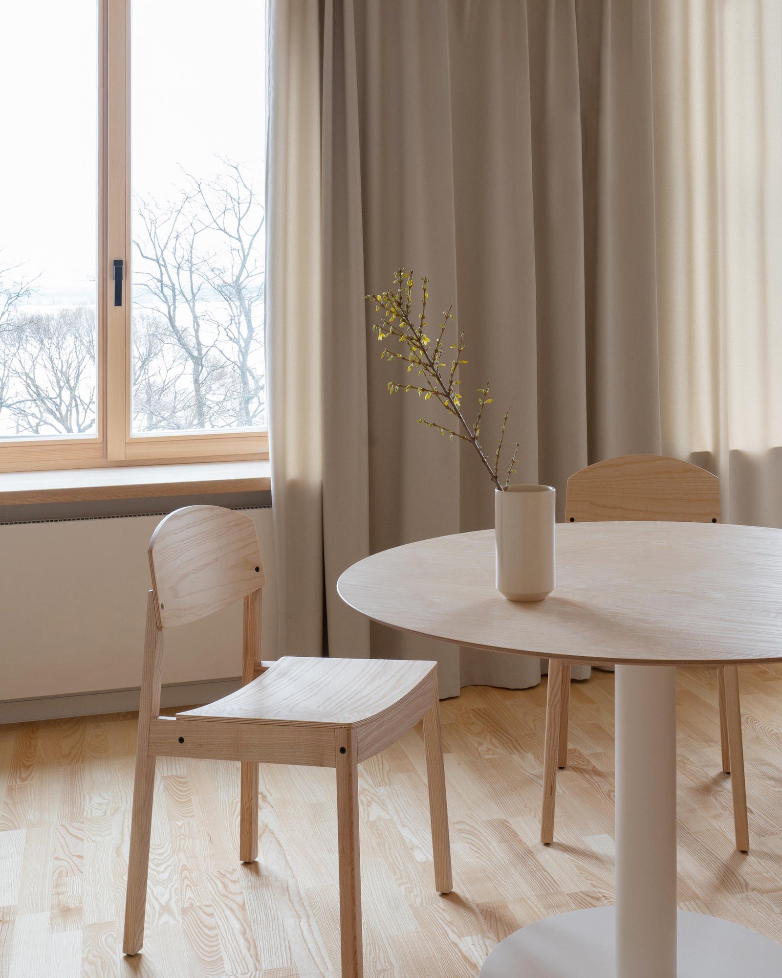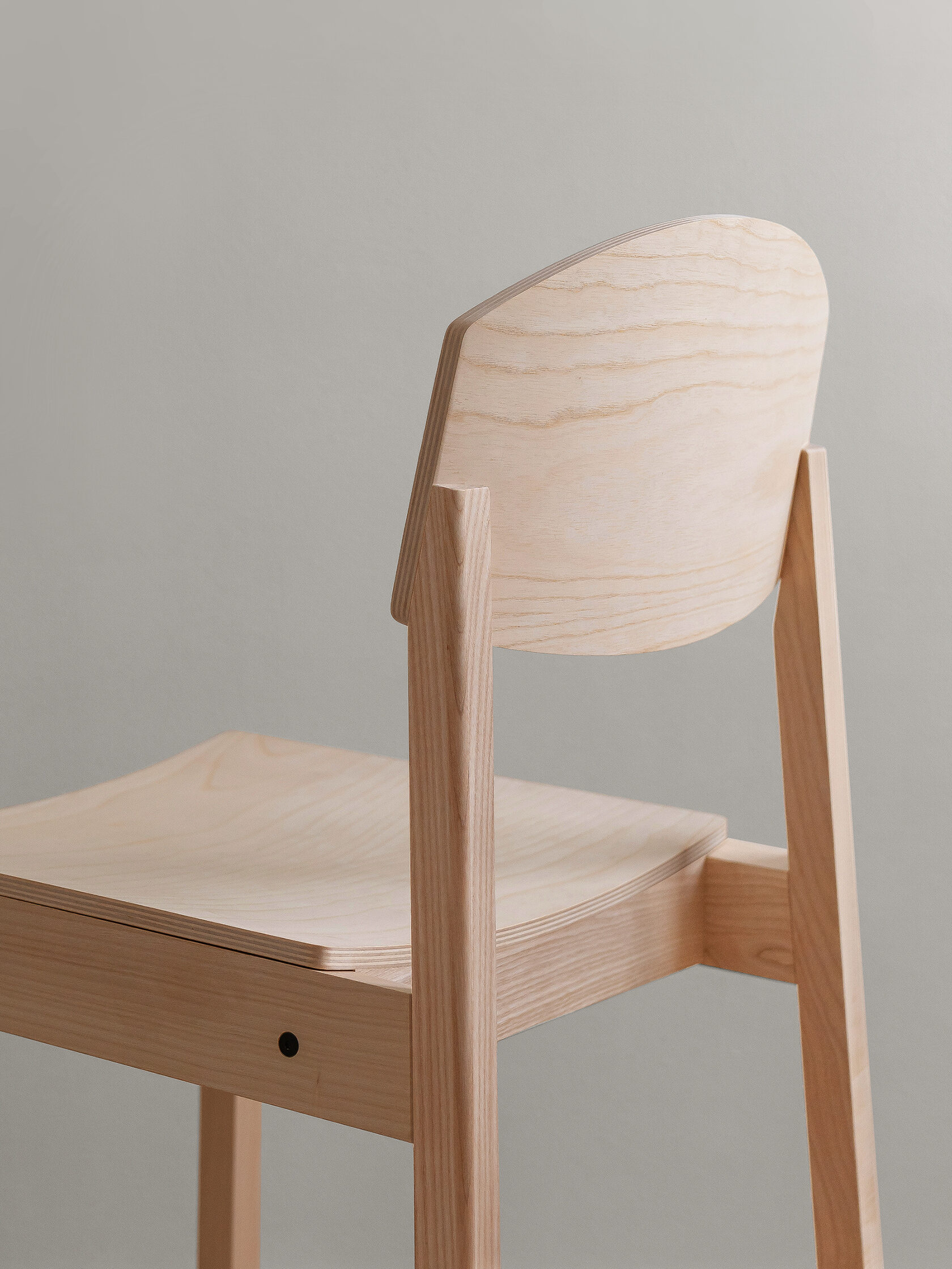 Bro is a lightweight chair made of beech. It is ergonomic and comfortable due to it's bent back and seat.