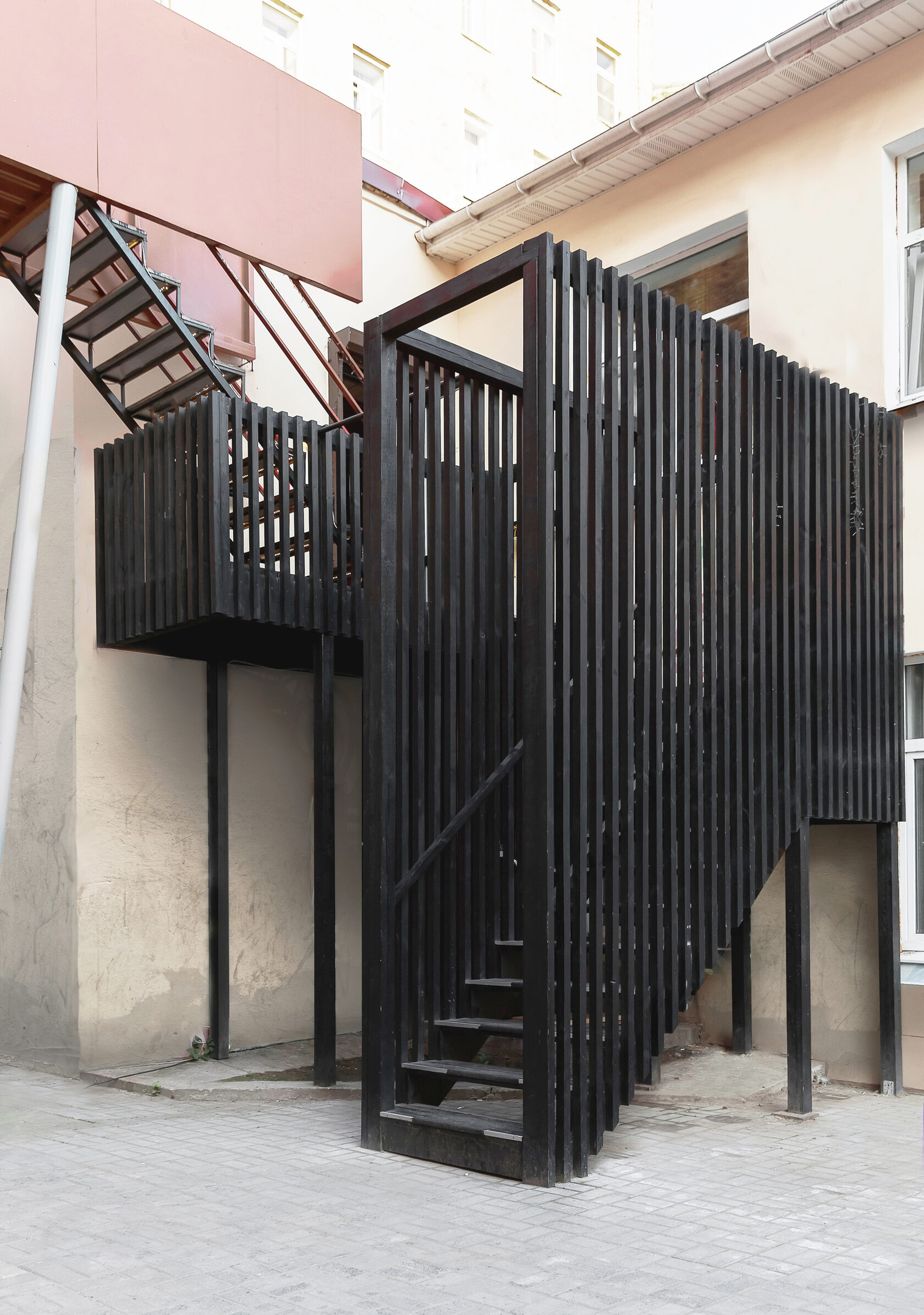 Back in 2013, the bar occupied a small space on the second floor in one of the buildings. That year, it was complemented by a staircase with a distinguishing portal and a small balcony. A year later, the space was expanded: a porch was built on the roof of an adjacent one-story building, and the new bridge was thrown across the courtyard, providing a link between several bar spaces.