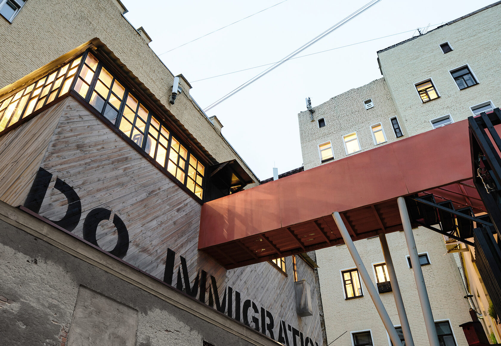 Do Immigration is a casual wine bar located in Fligel cluster in one of St. Petersburg's central courtyards.