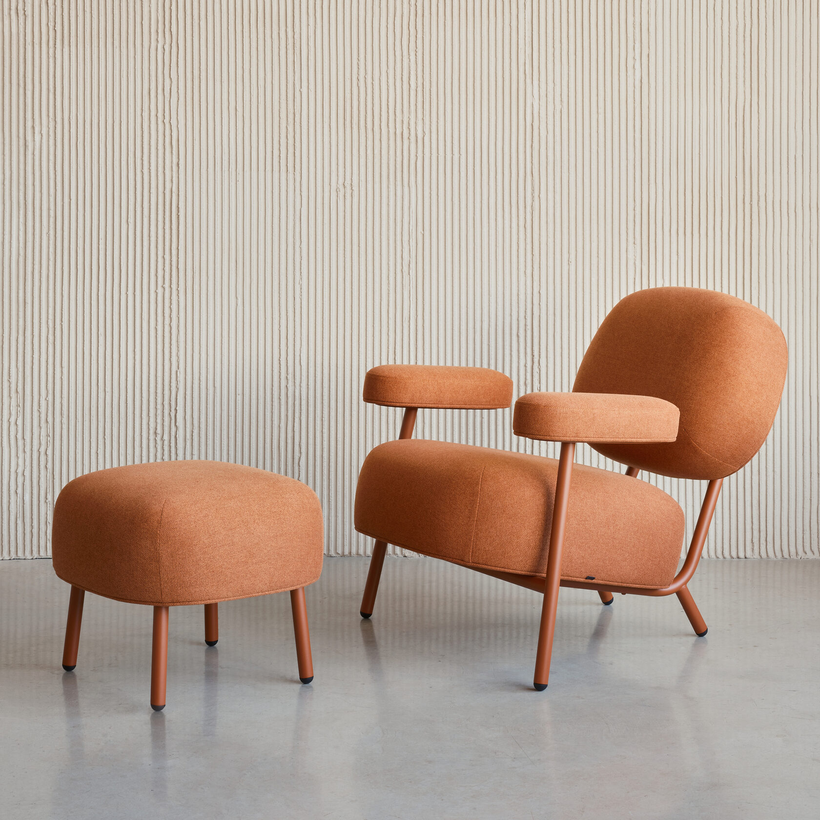 Kaef armchair carries out a tradition of classical lounge chairs defined by the low-placed inclined seat, comfortable armrests and the addition of an ottoman. Kaef's shape is inspired by the works of Soviet designers and avant-garde artists of the 1920s.