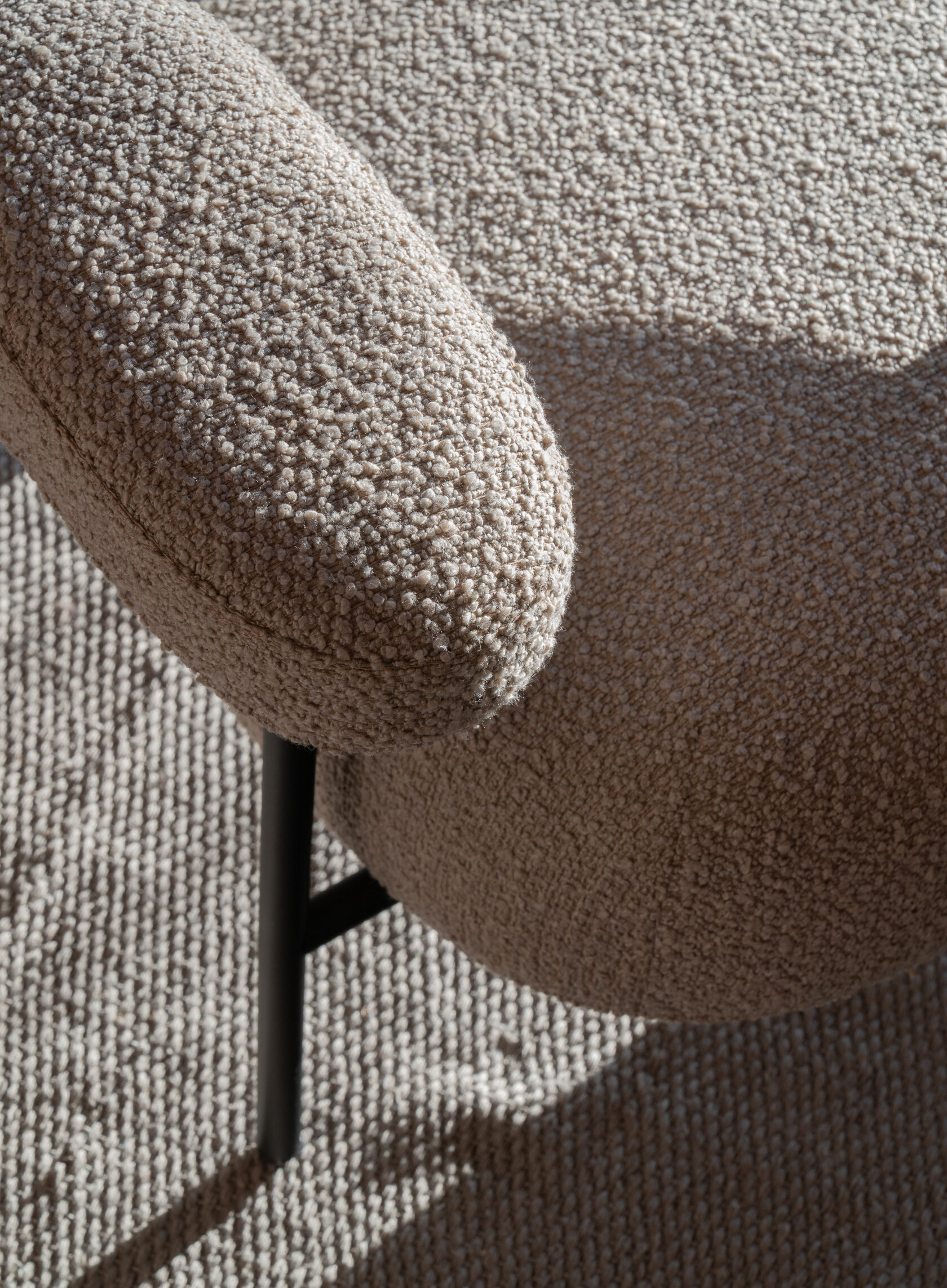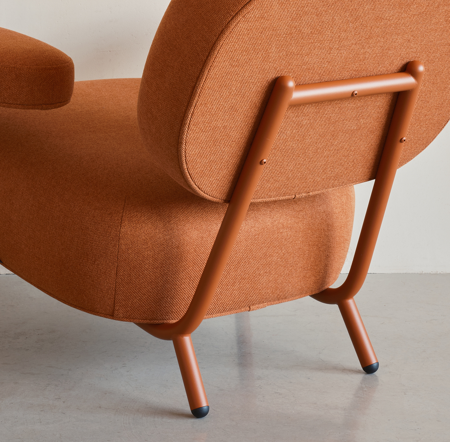 The first Kaef armchair was released in 2019. Its frame is made out of bent steel pipe. Durable upholstery allows the use of armchairs at home as well as in public spaces. Model is firm: if the need occurs, its steel frame can be repainted, the soft parts can be reupholstered.