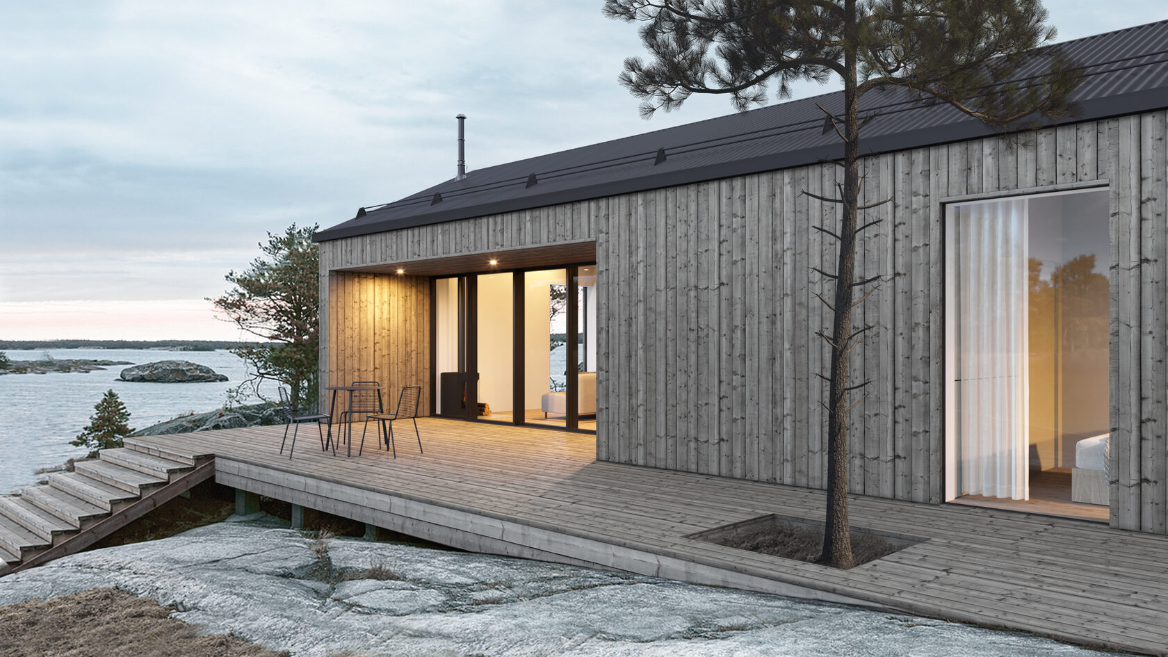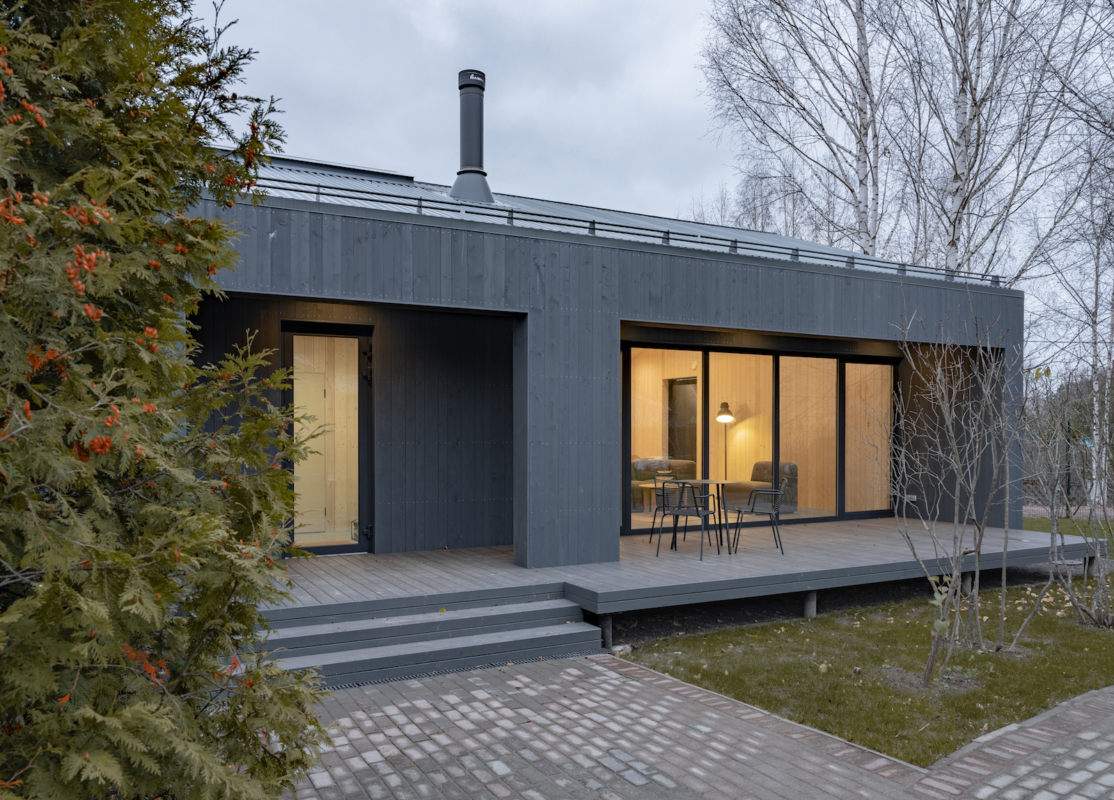 Frame house total area of 66 m² with two bedrooms and open terrace