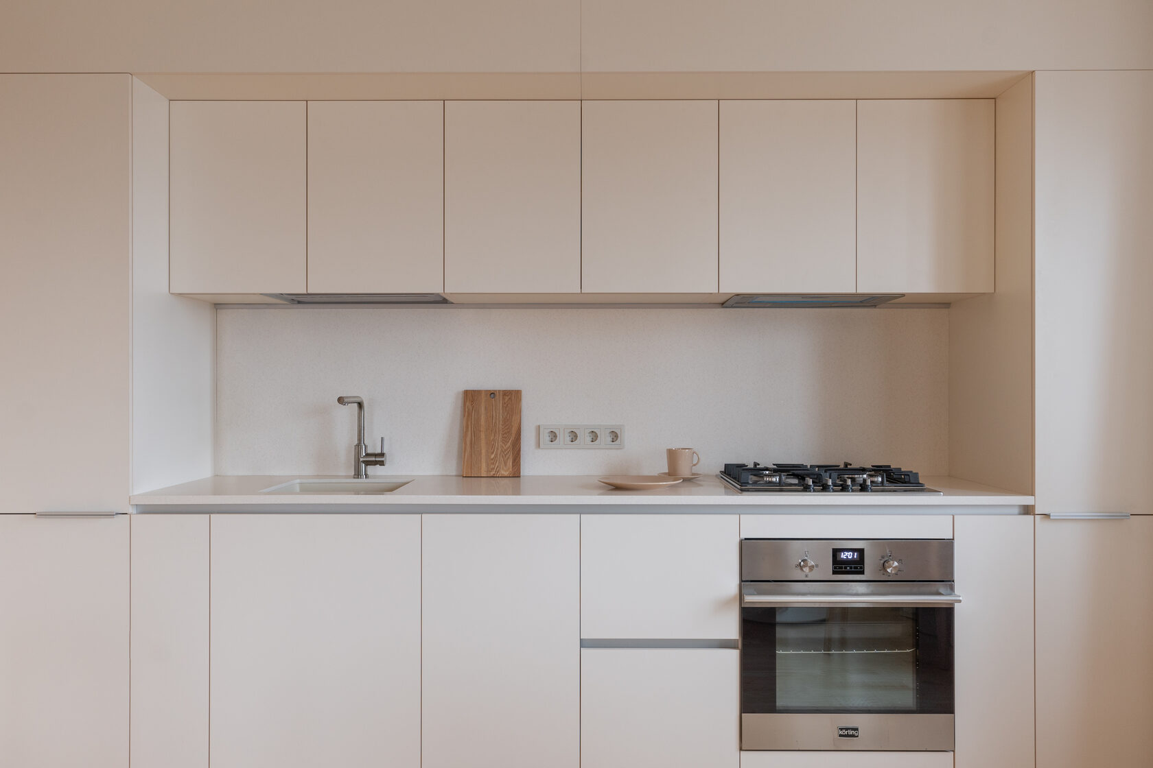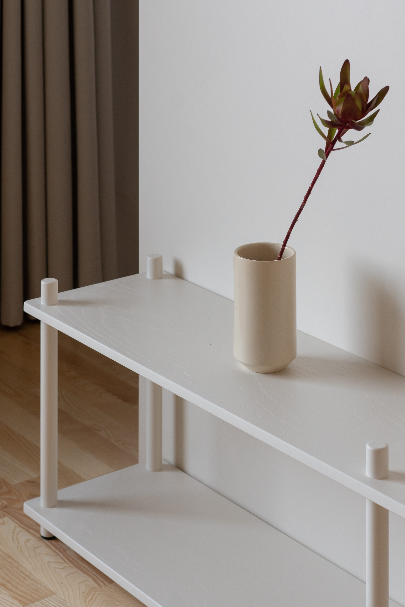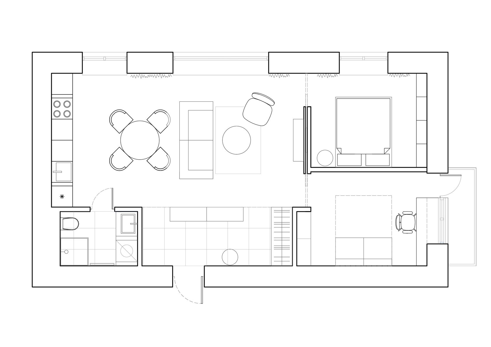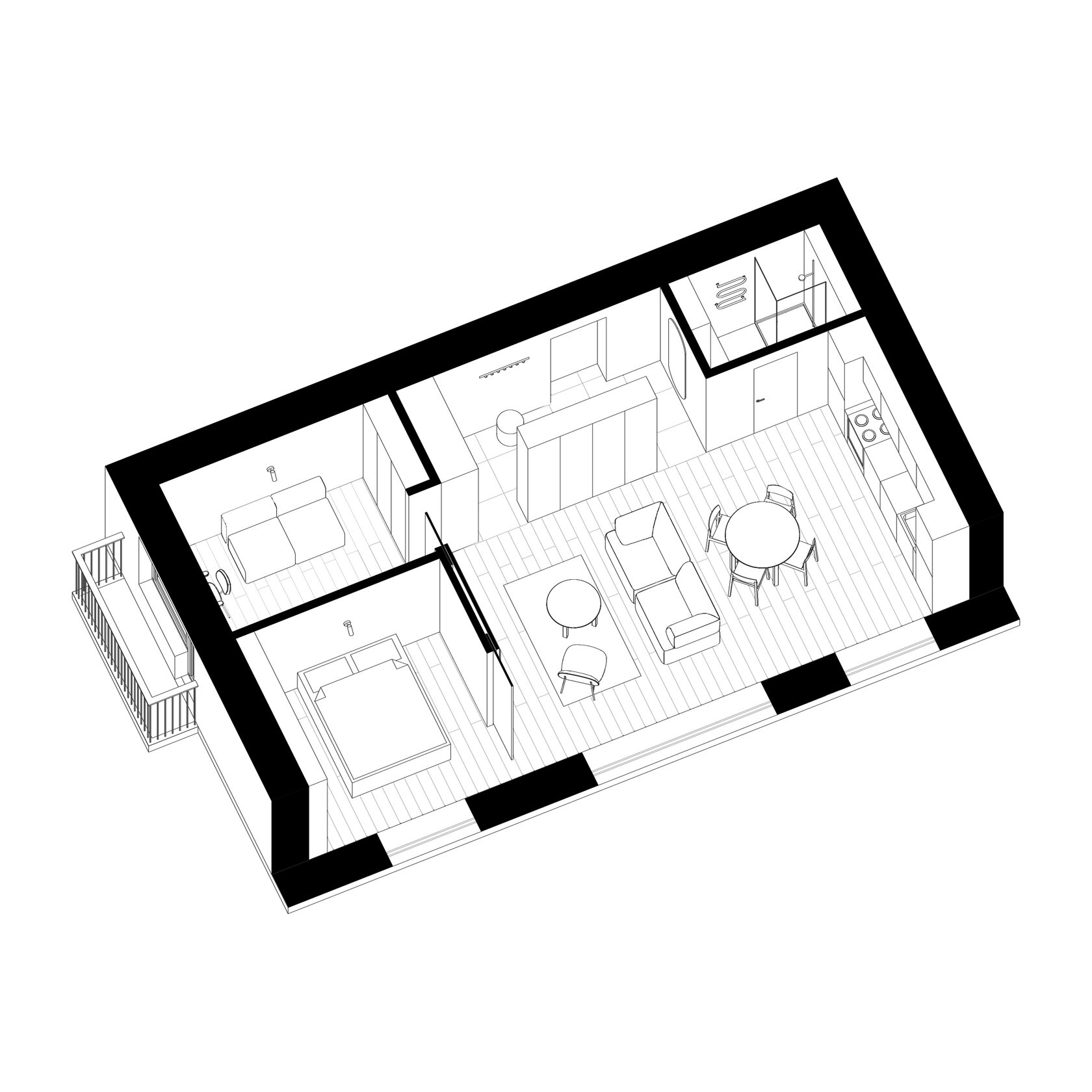 An example of how a small apartment in a typical Soviet nine-story building can be redesigned and furnished with furniture and household items from the brand. The main material used in the decoration and furniture is ash wood. In the center of the living room, there is a large window overlooking the lake.