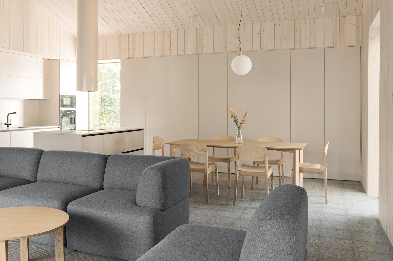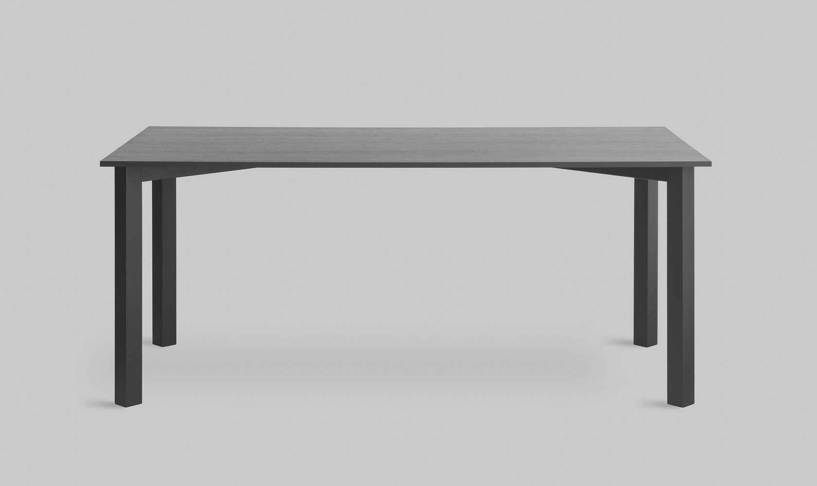 Top: veneered with ash on the upper and lower sides 17 mm MDF, enamel according to the RAL Classic catalog with a matte lacquer / transparent matte lacquer / matte lacquer with medium tint / matte lacquer with dark tint Legs: solid ash, coated to match the tabletop Frame: steel profile, polymer powder coating Weight: 37,5 kg, 39 kg